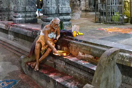 La matinée se poursuit au marché aux fleurs, explosion de parfums et de couleurs, avant une balade en tuk-tuk dans les ruelles animées de la vieille ville.L’après-midi, visite du palais de Thirumalai Nayak, avec sa salle d’audience au dôme suspendu, véritable prouesse architecturale. En soirée, retour au temple pour la cérémonie du coucher de Shiva : une procession de chants, de lumières et de ferveur, où Madurai dévoile toute sa magie rituelle.