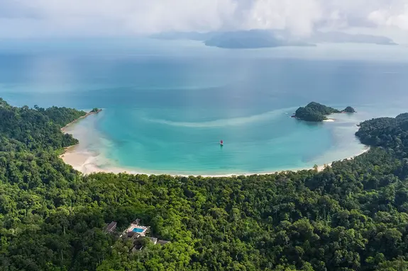 Isolé à la pointe nord-ouest de l’île de Langkawi, au milieu d’un pan de jungle authentique, l’hôtel donne sur la tranquille baie de Datai, tapissée de sable blanc et élue par le National Geographic parmi les «Top 10 Beaches in the World». On ne trouve ni restaurants locaux ni commerces dans les proches environs: un gage de tranquillité. Le trajet jusqu’à l’aéroport de Langkawi prend environ 40 minutes.