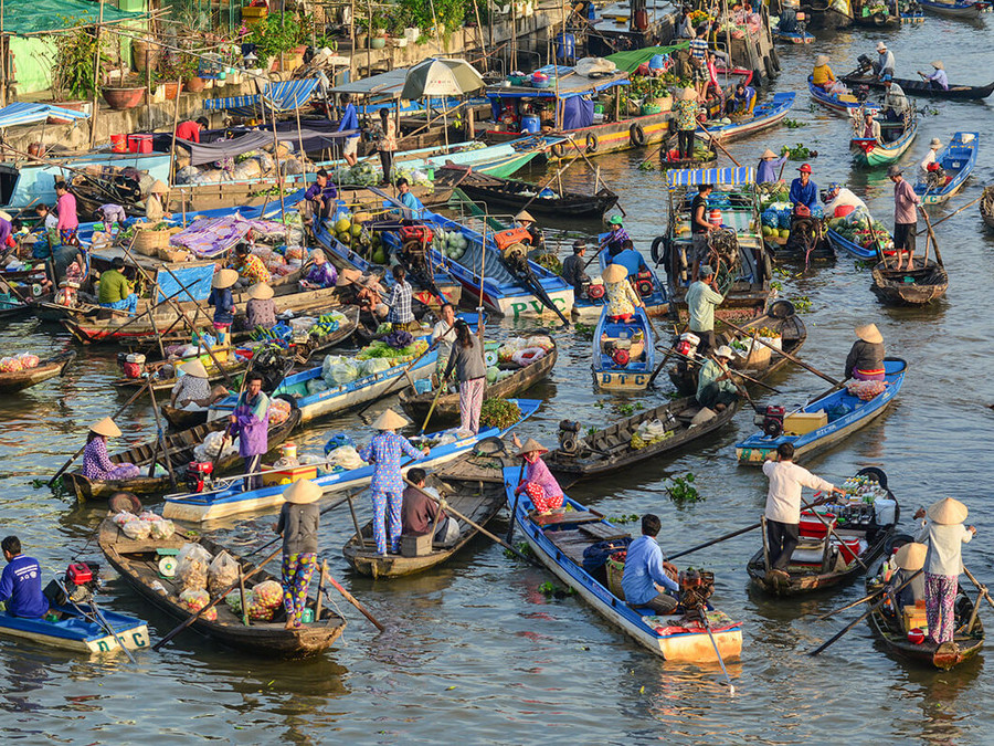 Le Delta du Mékong, surnommé « le grenier à riz » du Vietnam, est une région fertile et riche en biodiversité. Embarquez pour une excursion en bateau à travers les marchés flottants et les vergers tropicaux.